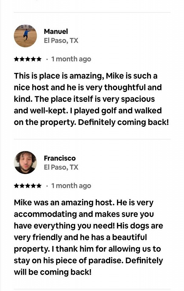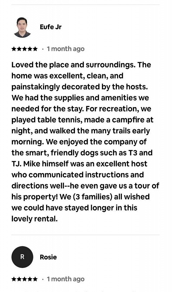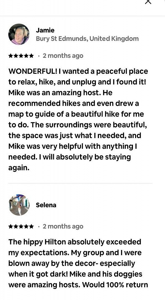 New to VRBO & Hipcamp. Established Airbnb listings with 450+ 5-star reviews.
